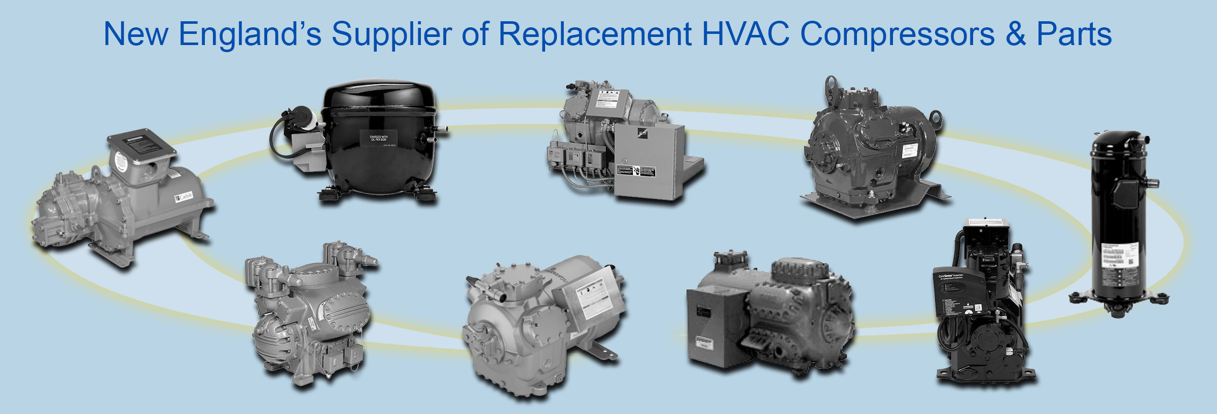 We carry New England’s largest inventory of replacement Air Conditioning & Refrigeration compressors! All of our semi-hermetic compressors are remanfactured in ISO 9001 facilities to meet or exceed the OEM’s specifications. Every compressor comes with a 1-year replacement warranty, as well as outstanding 24/7 Technical support and free jobsite delivery and pickup of the core!
